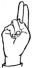 На ћирилици написано РАДНА КОВИЋ састоји се из 10 слова [?]. Исписано ћириличном једноручном азбуком за глувонеме: